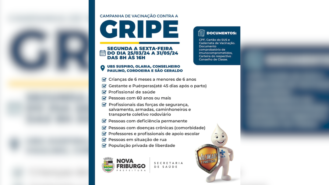 No último sábado, dia 14, foi realizado em Nova Friburgo o Dia D de vacinação contra a gripe e multivacinação para atualização da caderneta vacinal.