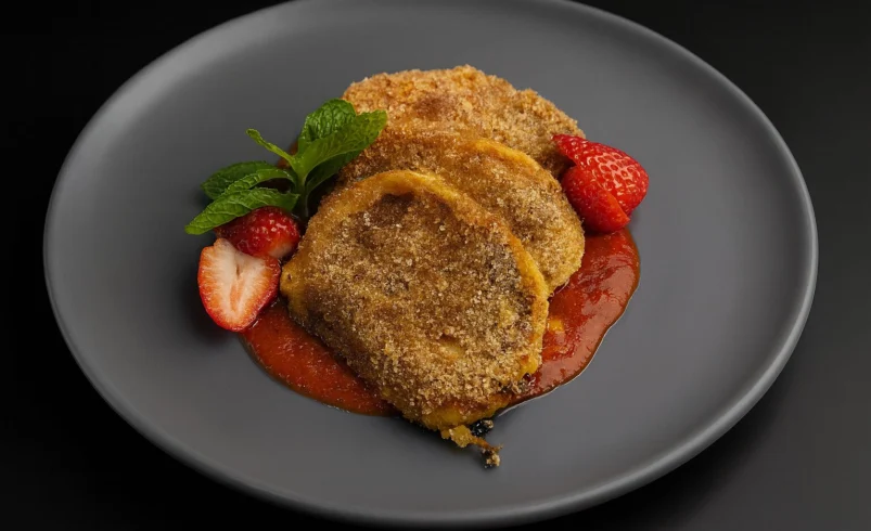 A rabanada francesa do chef Thainnan Carvalho apresenta uma combinação equilibrada entre delicadeza e intensidade de sabor. A preparação começa com a mistura de leite, ovo, açúcar e baunilha, responsável por hidratar levemente o brioche. Além disso, as raspas de limão e laranja adicionam frescor cítrico que complementa a doçura natural da receita. As fatias douradas na manteiga ganham textura macia por dentro e crosta sutil por fora. Posteriormente, a mistura de açúcar, canela e raspas aromatiza e finaliza o doce com personalidade. A calda de morangos frescos traz acidez e leveza, equilibrando o conjunto. Dessa forma, o prato se torna ideal para cafés especiais, brunches ou sobremesas elegantes.