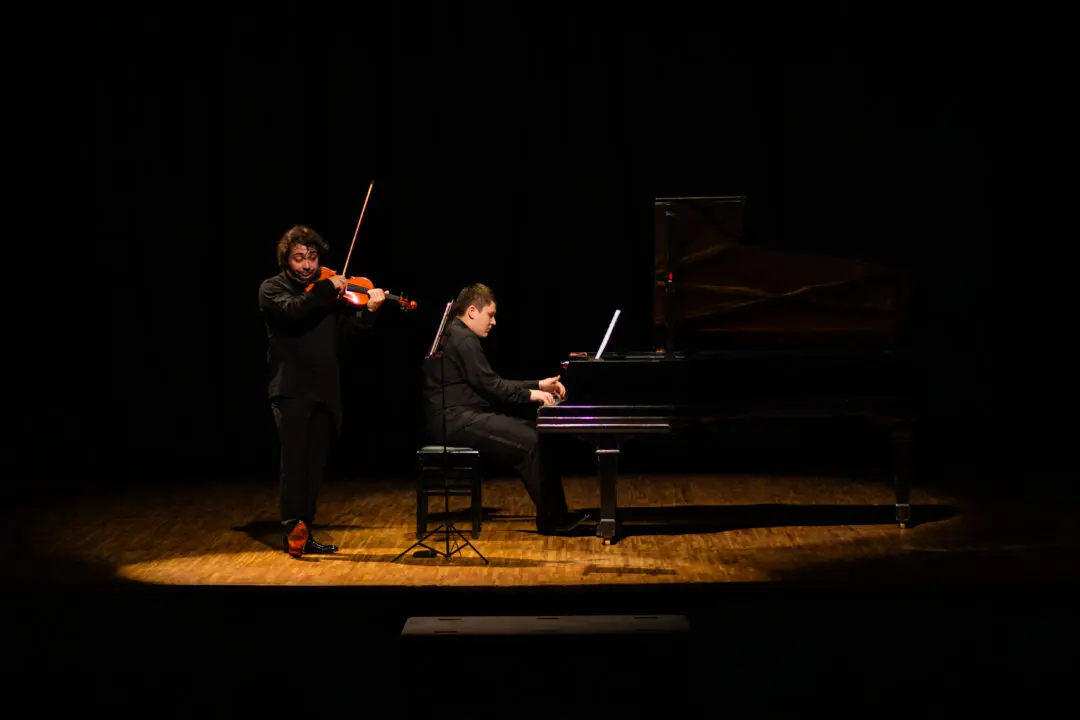 O pianista Sergey Davydchenko e o violinista Daniil Kogan, ambos premiados no Concurso Internacional Tchaikovsky, foram ovacionados pela plateia.