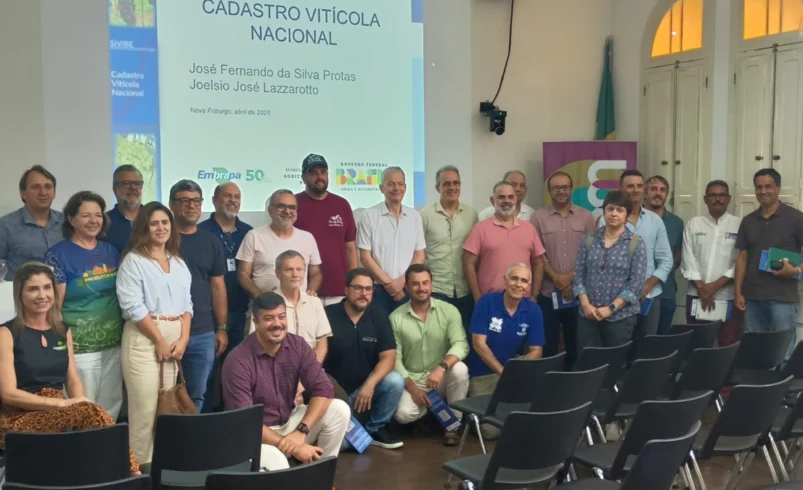 O cadastro nacional entrou na pauta de uma reunião realizada nesta terça-feira (01) entre viticultores de Nova Friburgo e representantes do Ministério da Agricultura e da Embrapa Uva e Vinho. O encontro ocorreu na sede da ACIANF, com o objetivo de apresentar o SIVIBE — Sistema de Informações da Área de Vinhos e Bebidas — que será exigido de todos os produtores a partir de 2025.