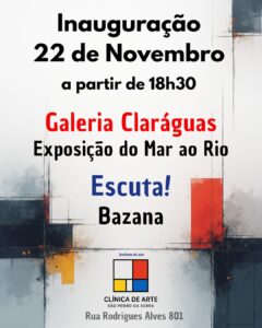 A Clínica de Arte, novo centro cultural de São Pedro da Serra, inaugura suas atividades no dia 22 de novembro com uma programação vibrante. Logo às 18h30, a Galeria Claráguas abre a exposição Do Mar ao Rio, com obras de Natali Tubenchlak, Nathália Mello e Silvia Leal, sob curadoria de Dinah de Oliveira. Em seguida, o cantor Guilherme Bazana apresenta seu disco autoral no projeto Escuta!, que convida o público a uma experiência sonora imersiva e sem celulares. Além disso, o espaço, idealizado por Celina Sodré, Leo da Selva, Raisa Richter e Bazana, abriga uma galeria, sala de espetáculos, estúdio e áreas de convivência. Dessa forma, a Clínica de Arte se firma como um novo polo de criação, formação e partilha artística em Nova Friburgo. Com propostas experimentais e acessíveis, o projeto estimula encontros entre linguagens e gerações.