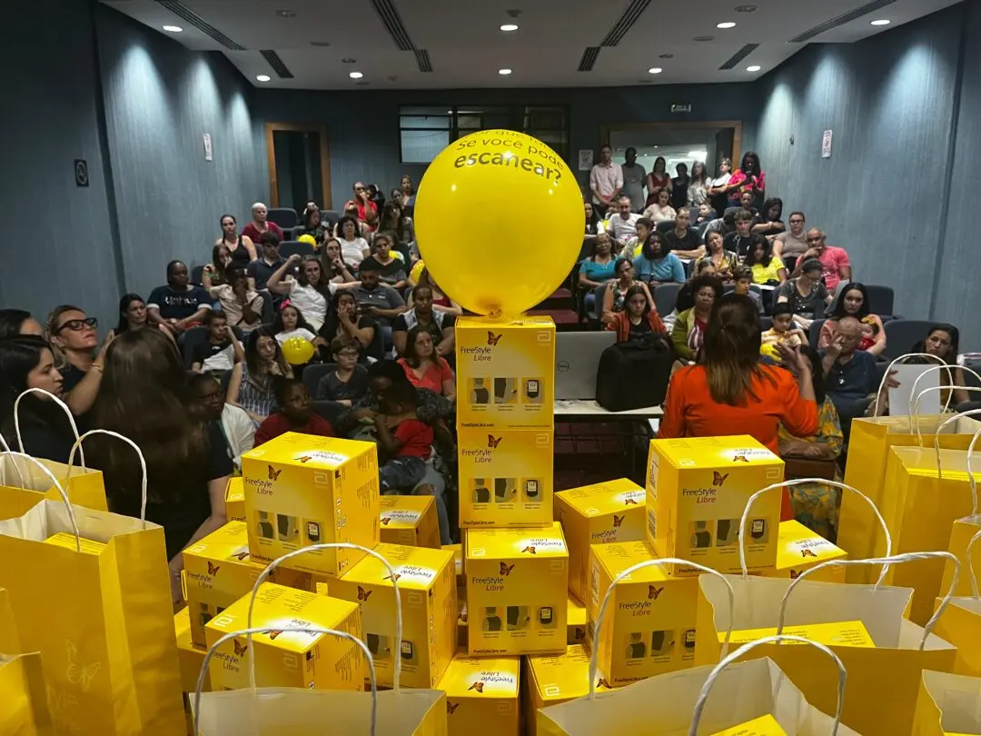 Esse é um aparelho desenvolvido para dar fim ao incômodo gerado pela medição da glicose através do furinho no dedo, especialmente para essa faixa etária que é mais sensível. Mais de 50 pequenos receberam um leitor compacto e portátil e um sensor.