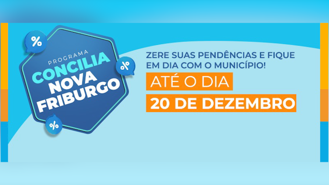 Os friburguenses têm até o dia 20 de dezembro para manifestar interesse em negociar suas dívidas relativas a tributos e taxas municipais. Para isso, é necessário aderir ao Programa Concilia Nova Friburgo, através do sitewww.novafriburgo.rj.gov.br.