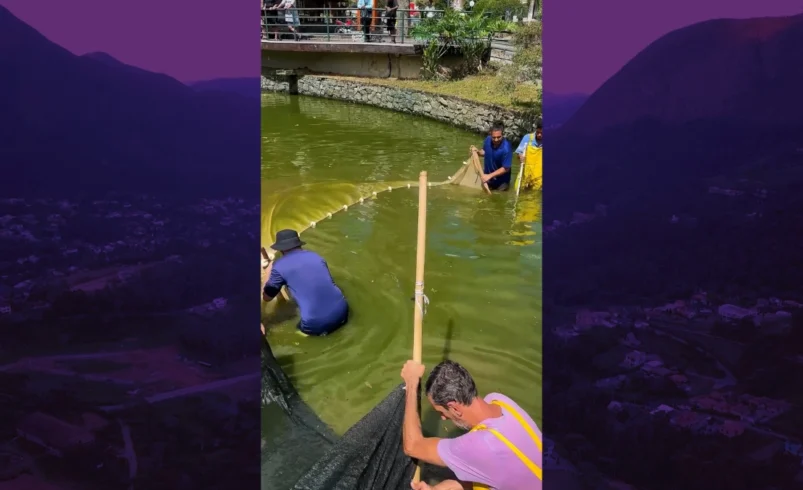 Após a morte de peixes, a Prefeitura de Friburgo inicia recuperação do lago de Lumiar com apoio técnico, limpeza e estudos para reintrodução de espécies.