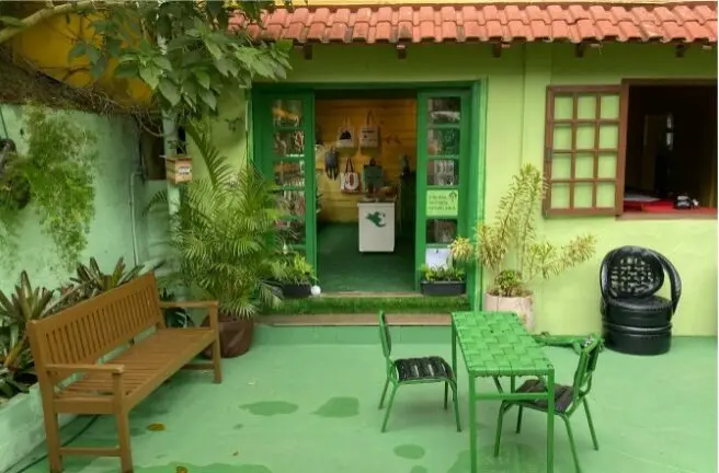 Além de oferecer produtos com tecidos 100% algodão, sendo 50% de algodão reciclado, a loja também é polo de educação ambiental.