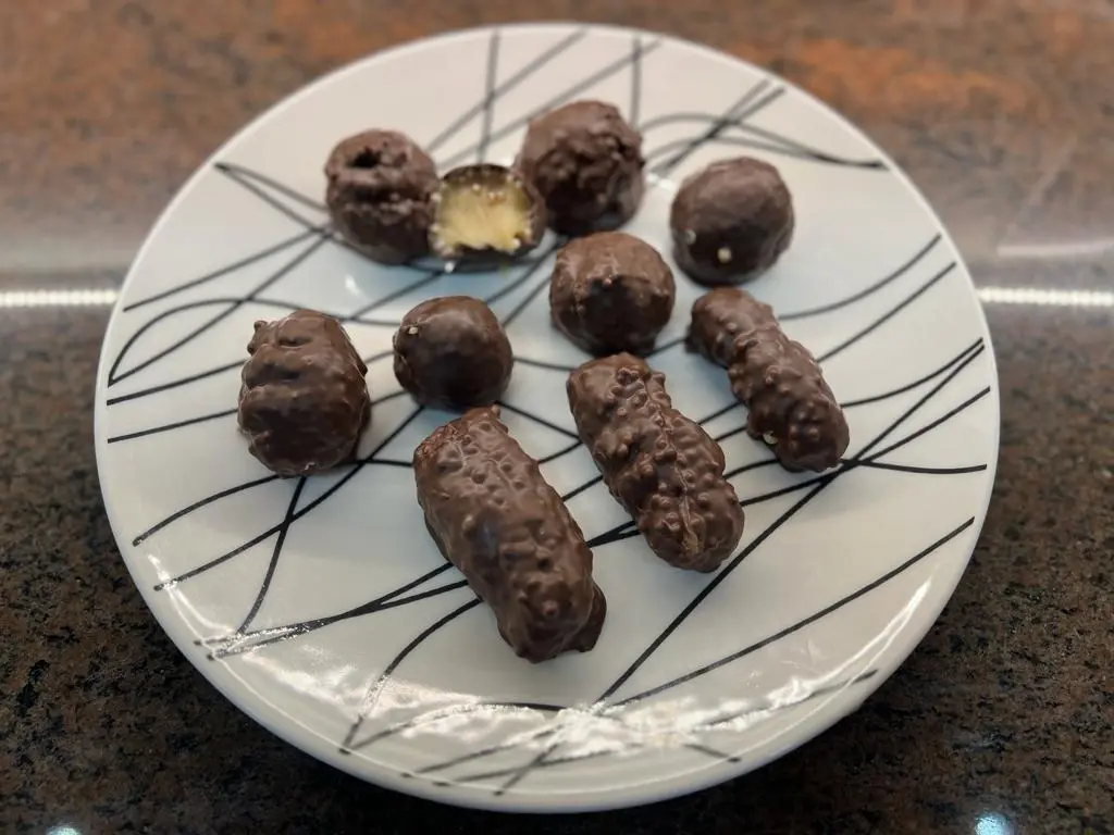 - Mergulhe o brigadeiro crocante na ganache de chocolate