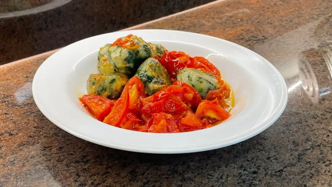 - Leve os tomates para a frigideira e acrescente as bolinas de nhoque