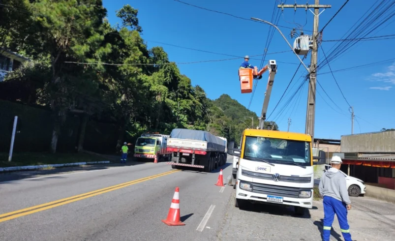 A intervenção tem como objetivo dar suporte às equipes da Prefeitura de Nova Friburgo na execução de serviços de manutenção da iluminação pública, com foco na revisão elétrica dos postes ao longo do trecho.