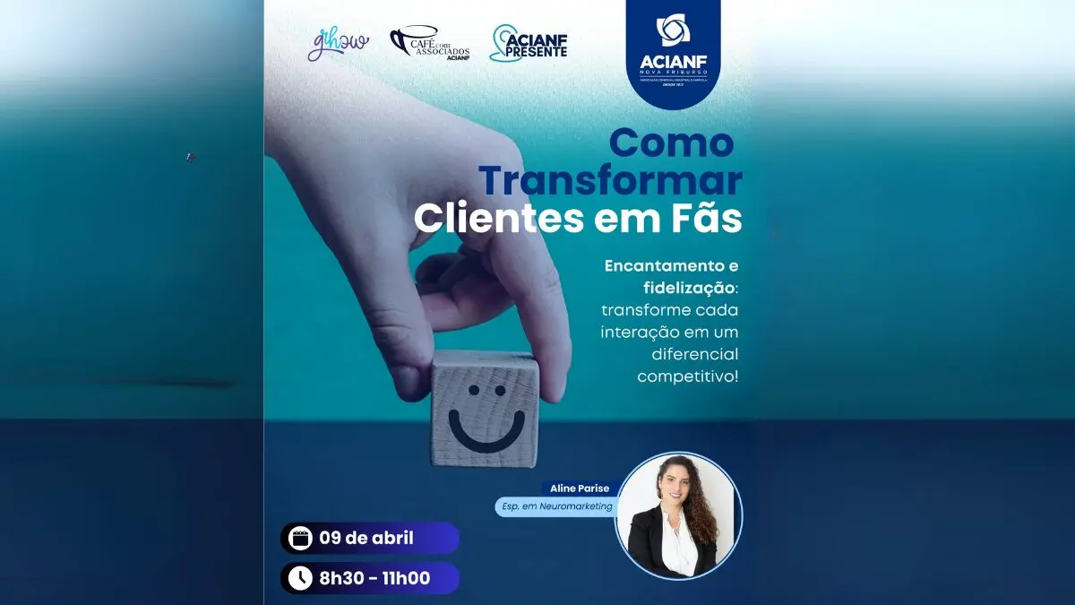 DESTAQUE Economia Geral Como transformar clientes em fãs? ACIANF realiza evento exclusivo by Ana Carolina Romanelli abril 8, 2025 Evento da ACIANF traz estratégias práticas para encantar e fidelizar clientes