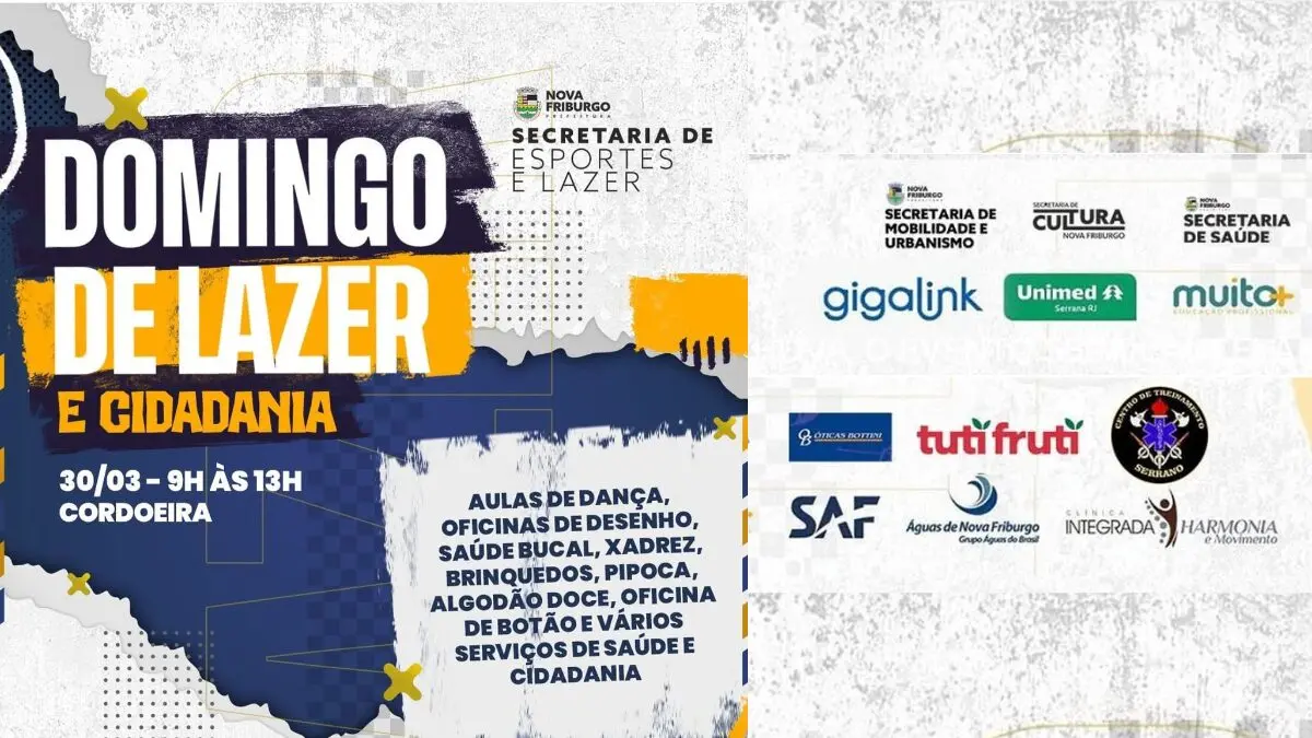Cidade DESTAQUE Geral Domingo de Lazer terá serviços para adultos em Friburgo by Ana Carolina Romanelli março 27, 2025 Primeira edição do novo Domingo de Lazer e Cidadania será no bairro Cordoeira