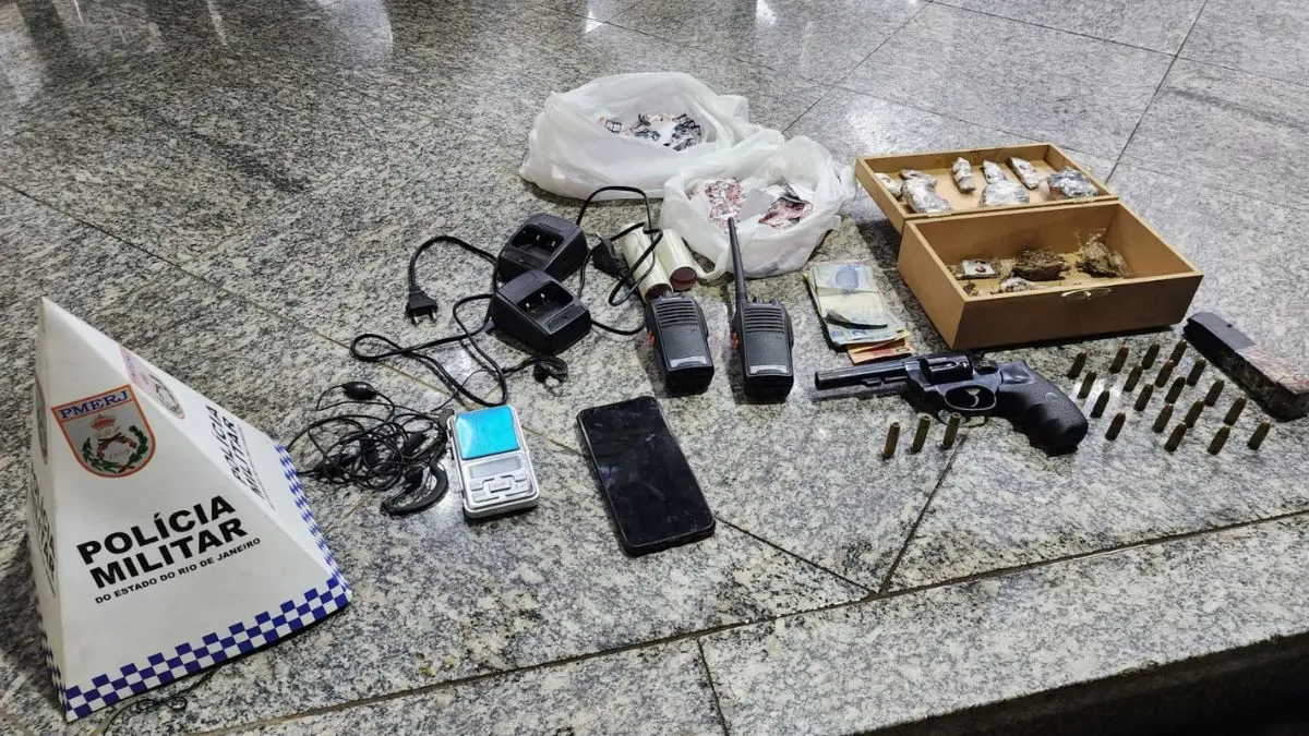 Operação da Polícia Militar em Nova Friburgo termina com a apreensão de entorpecentes, armas e equipamentos de comunicação no Parque das Flores.