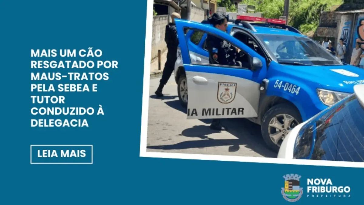 Cão vítima de maus-tratos é resgatado em Nova Friburgo com o apoio da Sebea e das forças policiais, e tutor é conduzido à delegacia